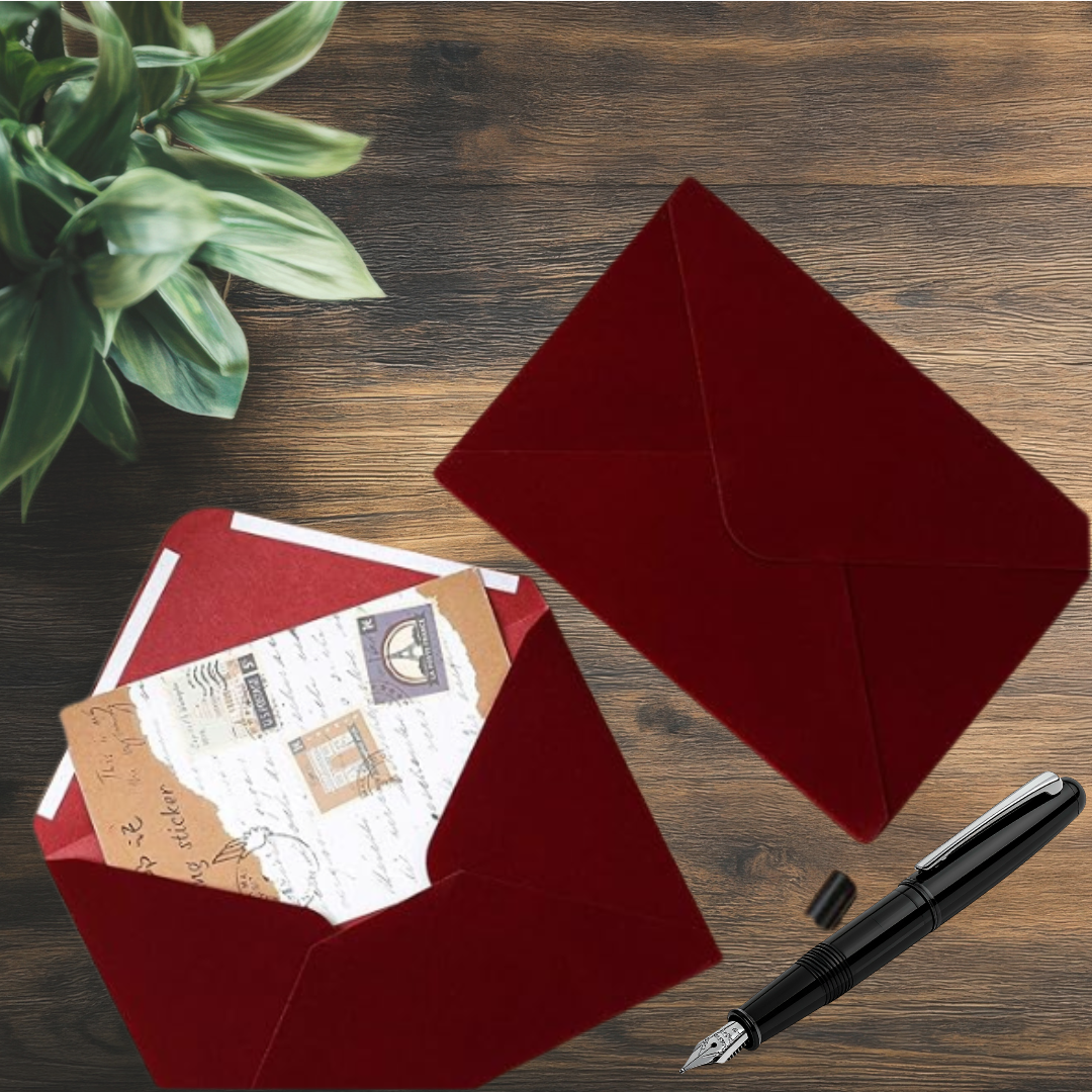 Charming Velvet Elegance: experience the epitome of sophistication with these well designed velvet envelopes; Crafted from velvet material, they add a touch of luxury, to a simple gesture.